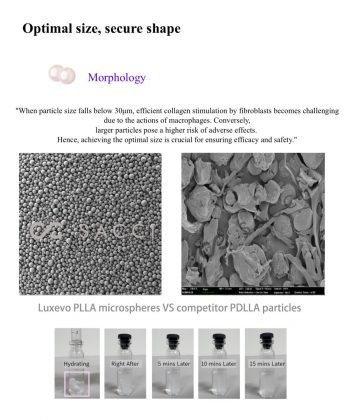 Luxevo’s patented cotton candy PLLA microspheres ensure rapid dissolution, uniform distribution, and high biocompatibility, promoting tissue regeneration without residual deposits.